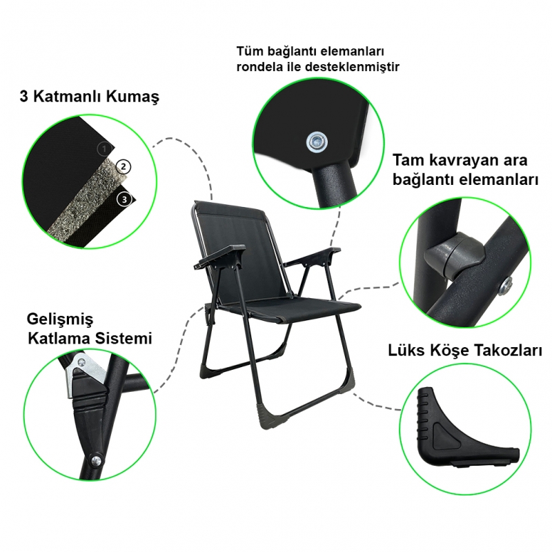 - Katlanır sandalyemizde 19mm çapında ve 0,70mm et kalınlığında dkp boru kullanılmaktadır.