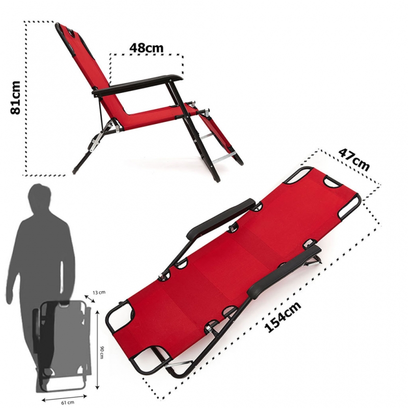 - Hem sandalye hem şezlong olarak kullanılabilir.